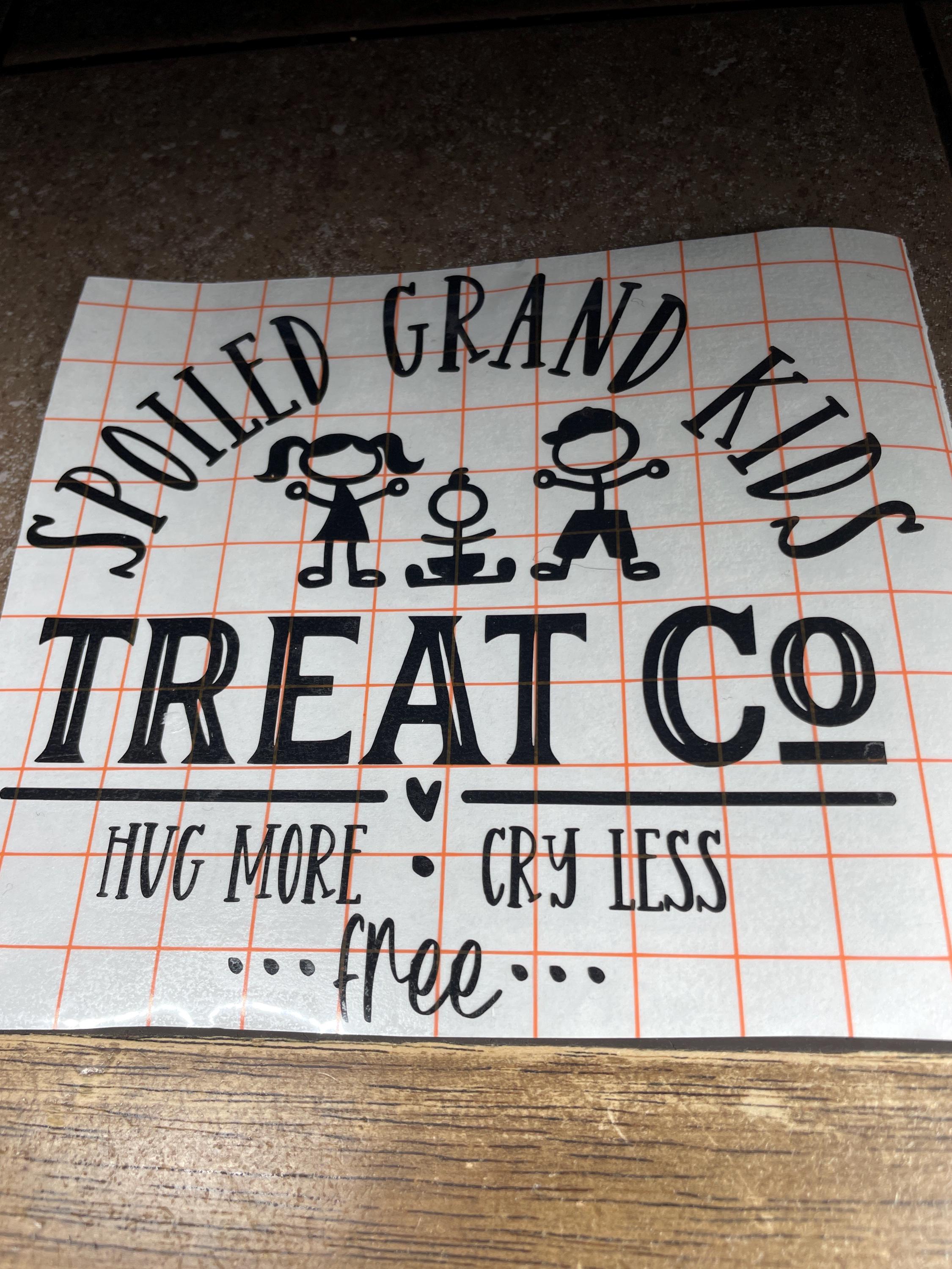 Transform your treat jar into a personalized masterpiece with this charming vinyl decal. The "spoiled grand kids treat co" decal adds a touch of whimsy and warmth to your kitchen decor, making it clear that your goodies are reserved for your beloved grandchildren. Crafted with high-quality vinyl, this decal is durable and easy to apply, instantly elevating the look of your cookie jar. Whether you use it for storing homemade treats or your grandkids' favorite snacks, this decal is a delightful addition to any home. Make your treat jar stand out with this lovely and fun decal that adds a touch of playfulness to your kitchen space.