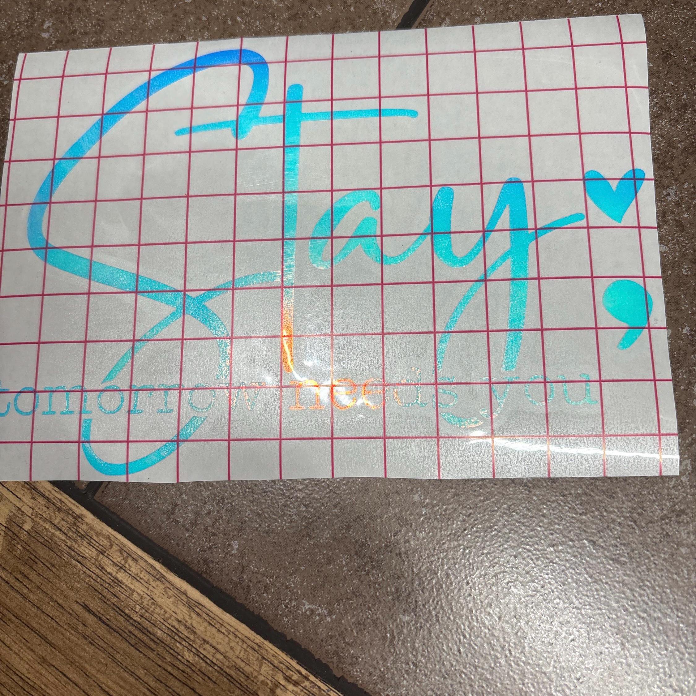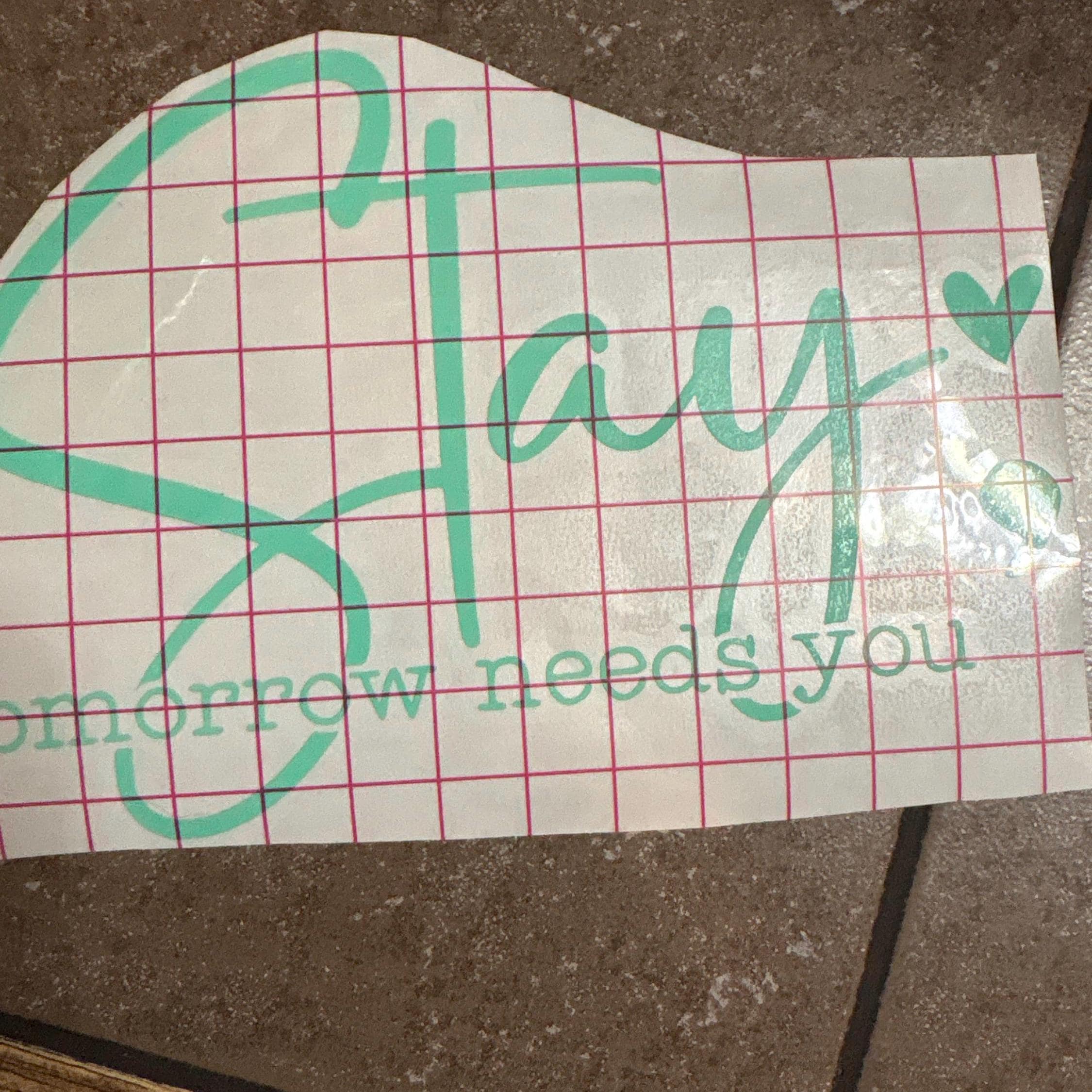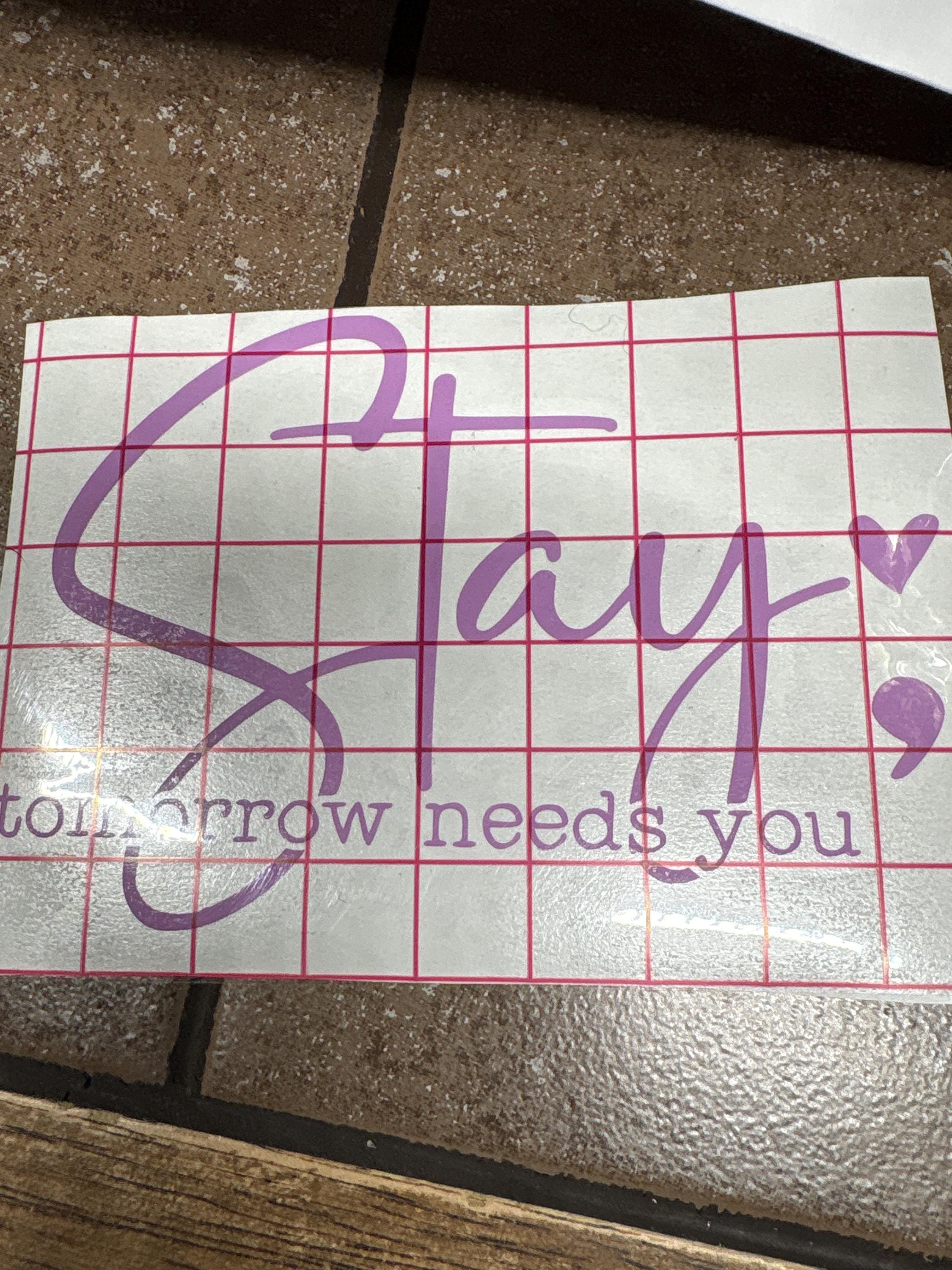 Our "Stay Tomorrow Needs You" suicide prevention vinyl decal serves as a poignant reminder that each day holds promise. This inspirational decal, featuring a graceful semi-colon design, conveys a message of hope and resilience—a gentle nudge to anyone battling depression and mental addiction. Expertly crafted to withstand the elements, this car decal fits seamlessly on any vehicle, making it a perfect companion for your daily journey toward recovery. The vinyl decal's simple yet impactful design not only brightens your car but also creates an opportunity for meaningful dialogue about suicide prevention. Let this car sticker be a beacon in dark times, uplifting those who need it most and reassuring them that they are never alone. Adorn your vehicle with this powerful statement, and drive with a message that inspires and supports.