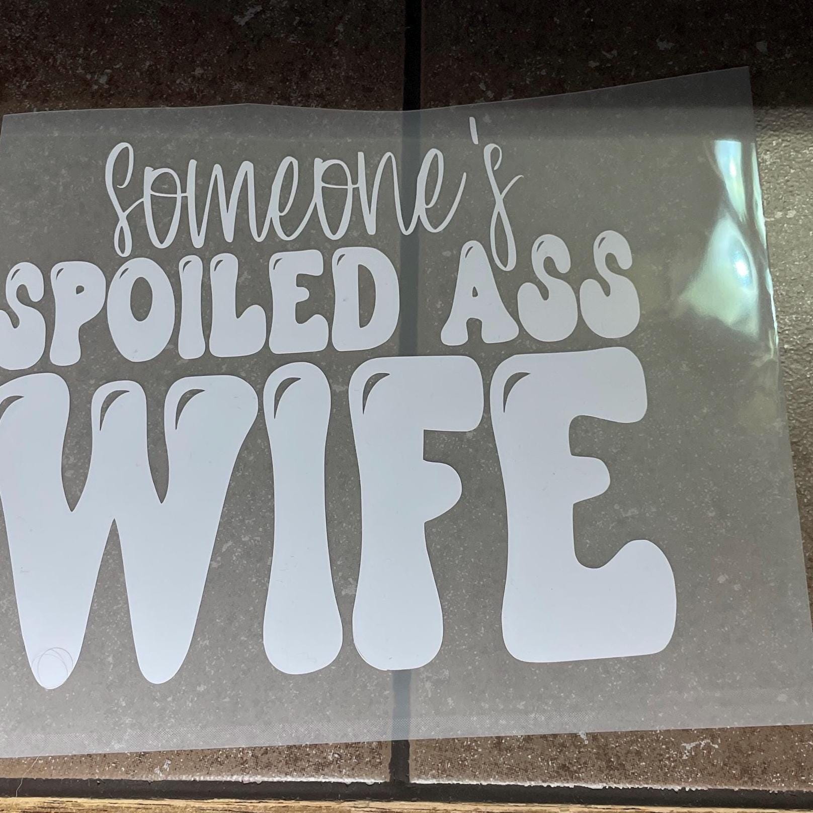 Let the world know who’s living the good life! This “Someone’s Spoiled Ass Wife” decal is the perfect blend of sass and humor. Whether it’s slapped on a car window, laptop, or tumbler, it’s a bold statement piece for the unapologetically pampered.