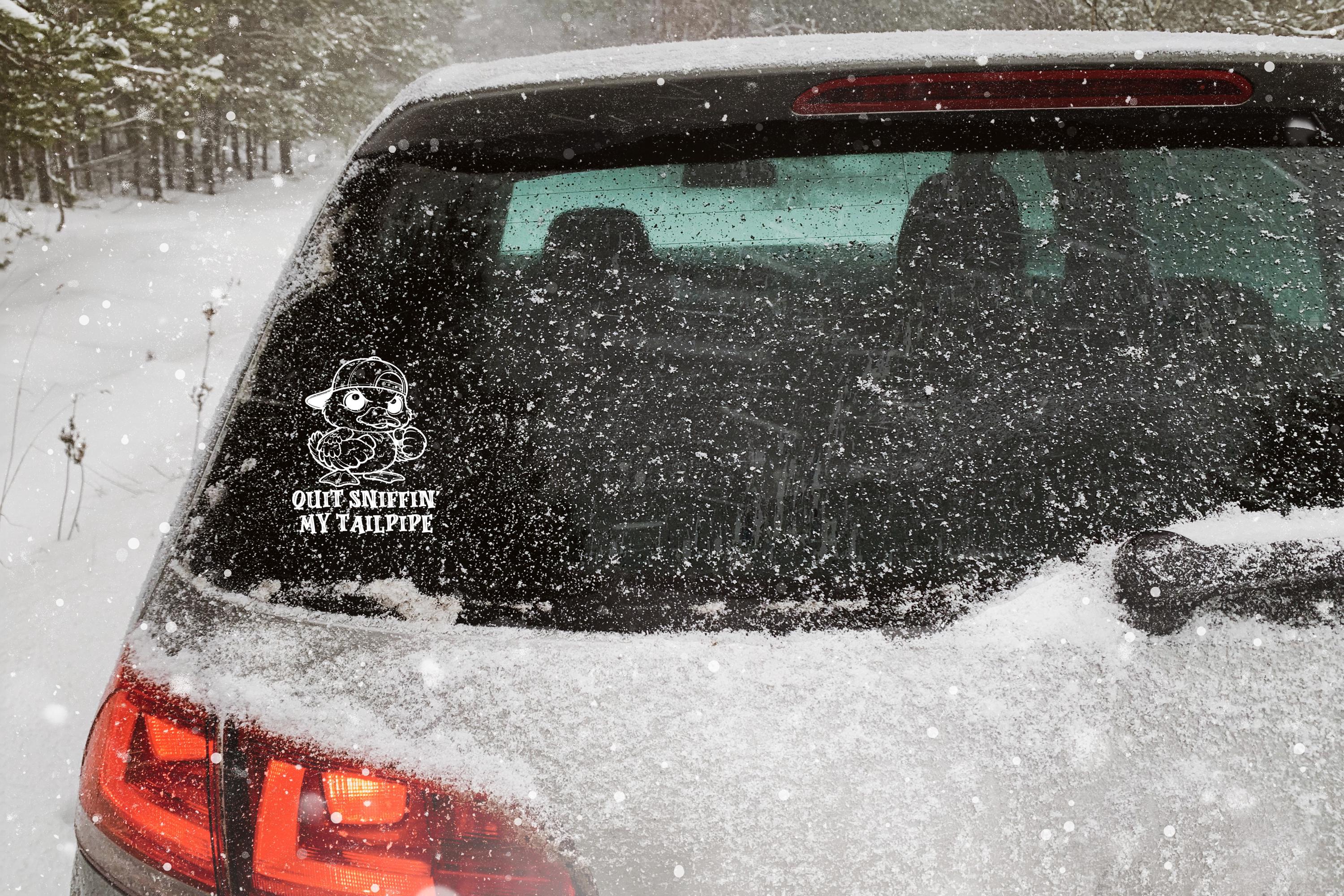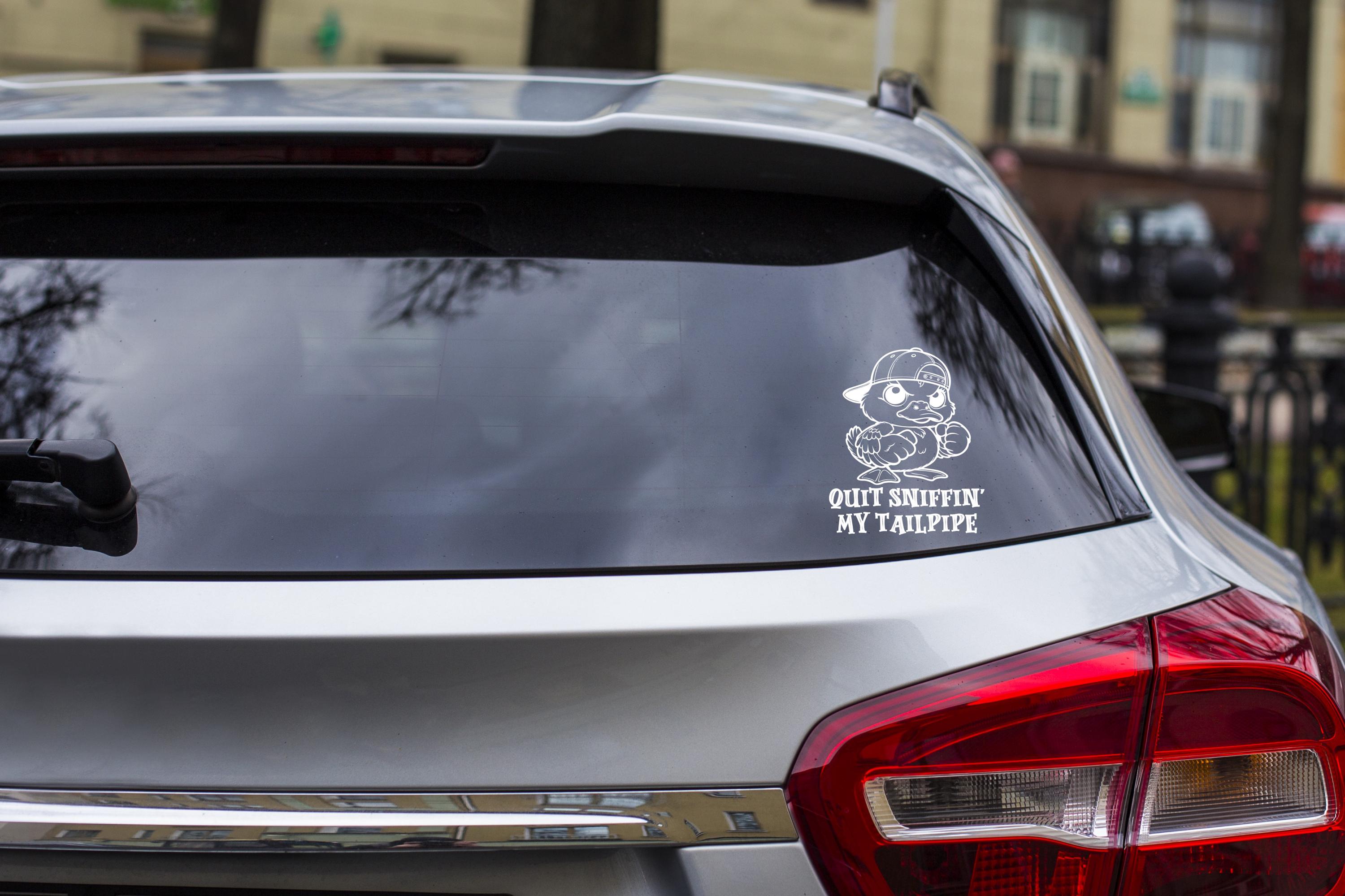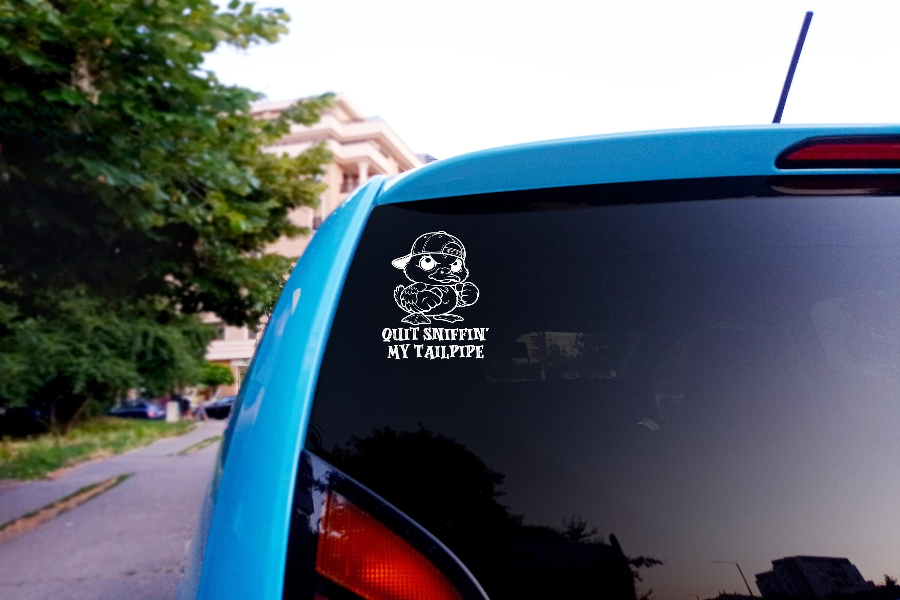 Funny Angry Duck Car Decal – “Quit Sniffin My Tailpipe” Cartoon Duck Sticker