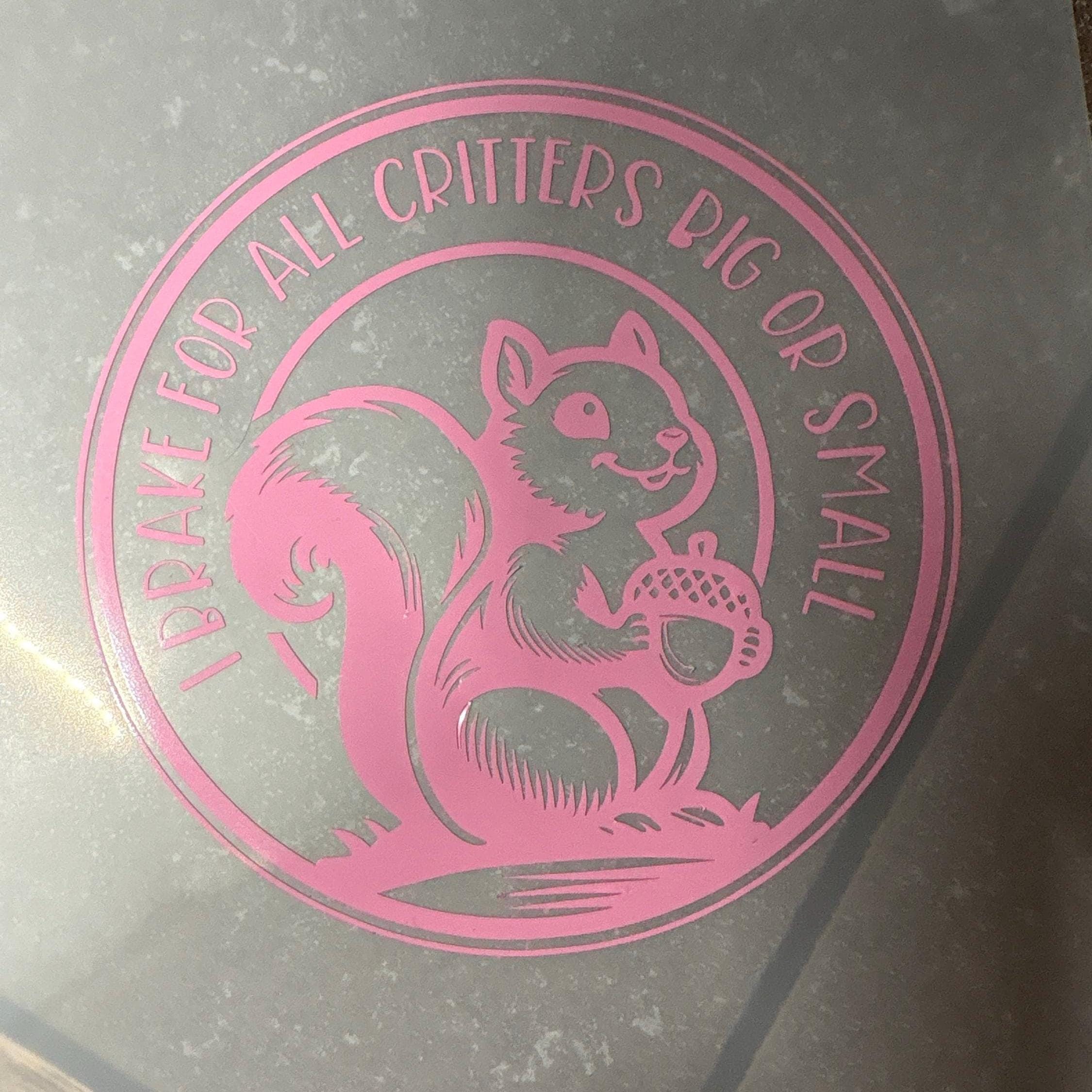 Funny Animal Safety Car Decal – “I Brake for All Critters” Squirrel Sticker – Wildlife Lover Gift