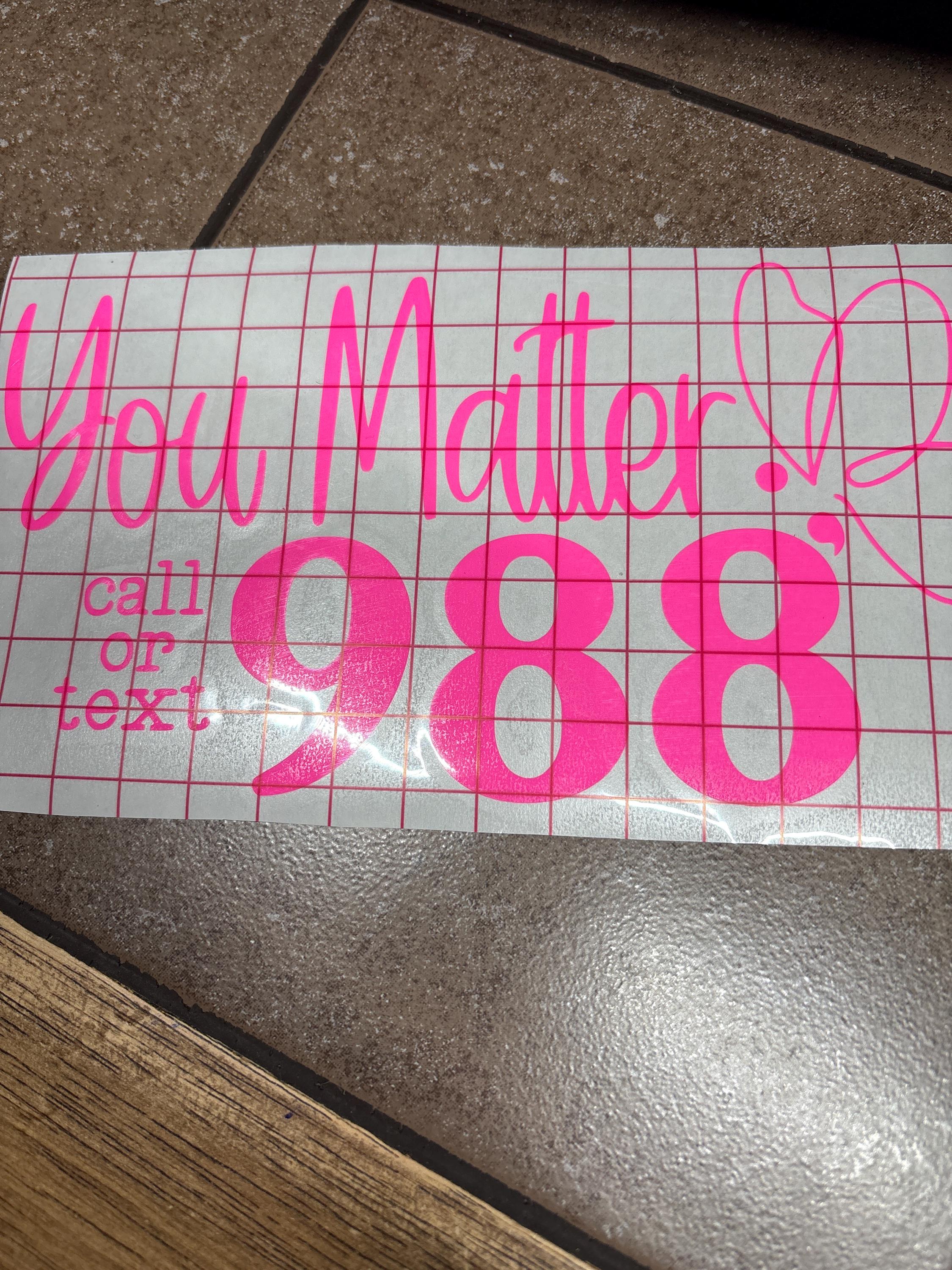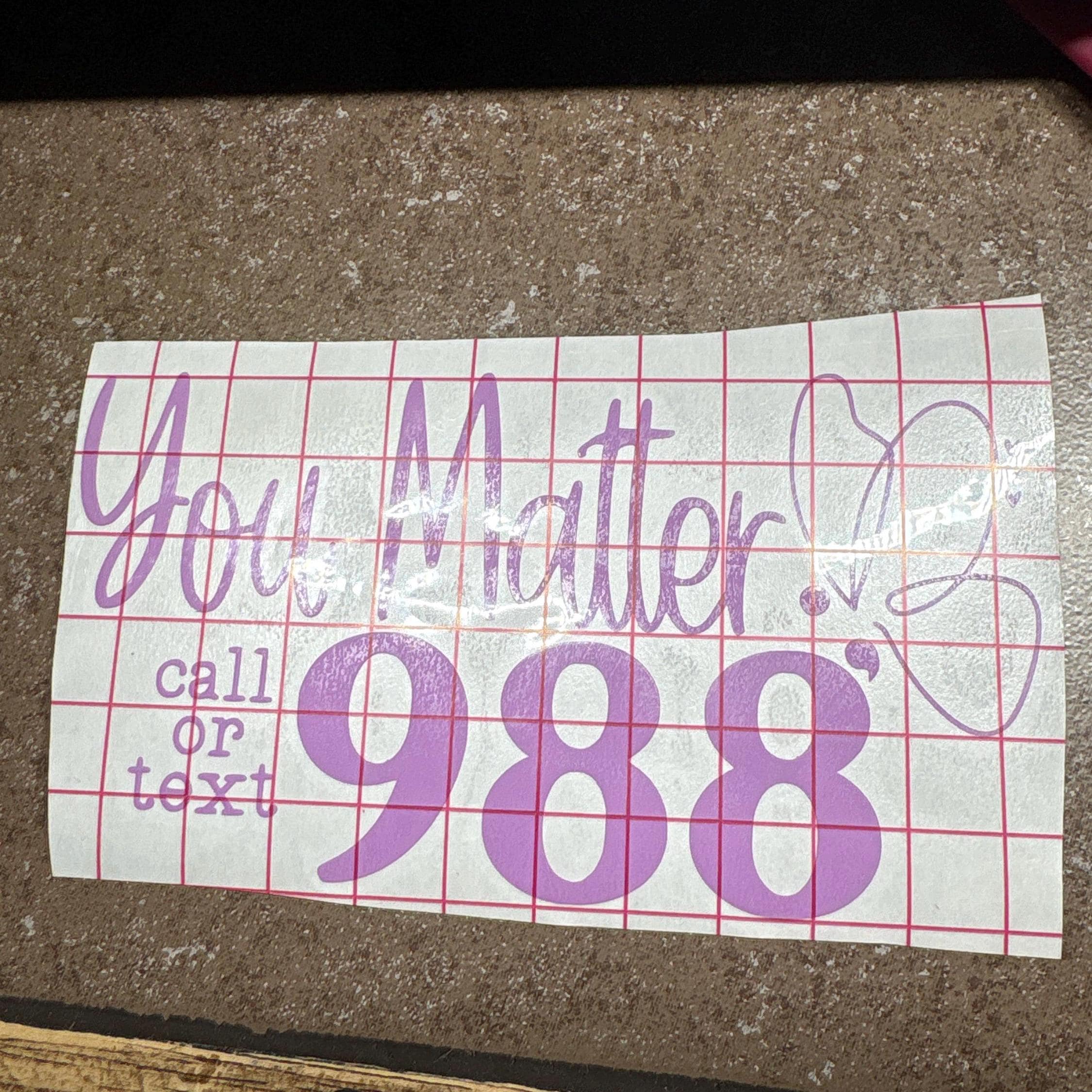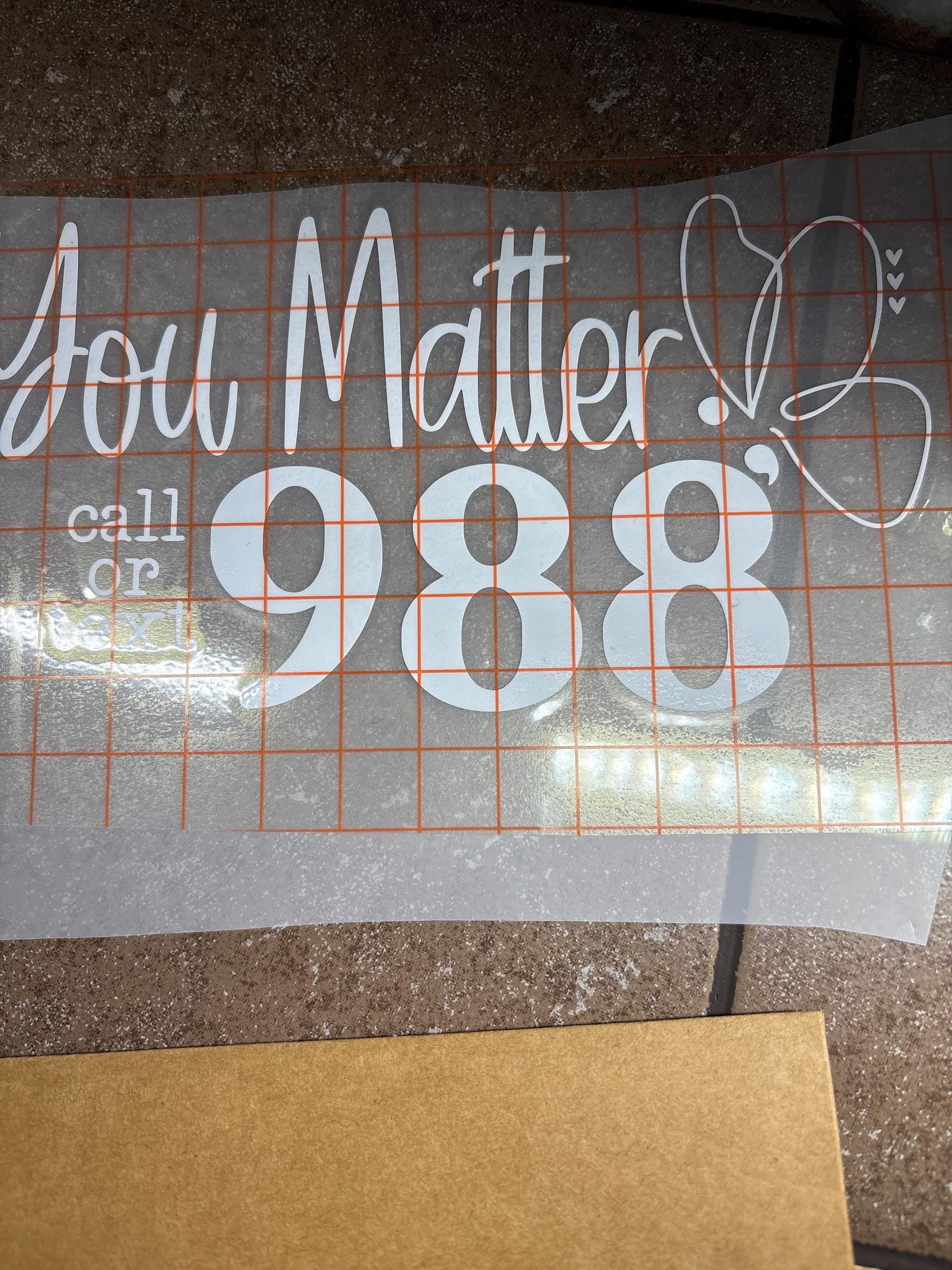 This “You Matter – Call or Text 988” decal is more than just a sticker—it’s a lifeline. Designed to promote mental health awareness and encourage help-seeking, it features a supportive message paired with a butterfly symbol of hope and transformation. Whether placed on a laptop, water bottle, journal, or mirror, this decal offers a gentle reminder that every life is valuable and help is always within reach.